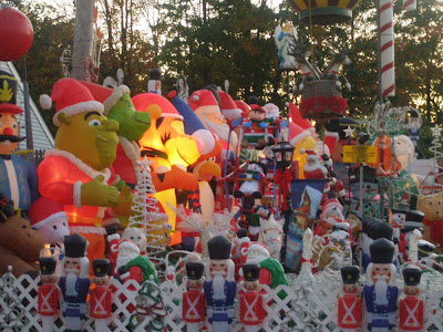 Whee. I haven't gone back this year yet, since it's always very crowded in front of the house, but in the spirit of Christmas, here are some pictures of the Insane Christmas House that's around the block from me. It has so many lights and decorations, it's crazy. There's a donation box on the property for a children's hospital and the people come out and give out little toys and candy canes to the children that come and visit, it's pretty there. The guy starts setting up in October or so - I saw the decorations a few times already when it was day time and they weren't all up, so he's definitely doing it again. He loves Christmas lights! I shall take more some time soon, but until then, you can view some here and the rest at the gallery link at all of the pictures - yay for Picasa --
